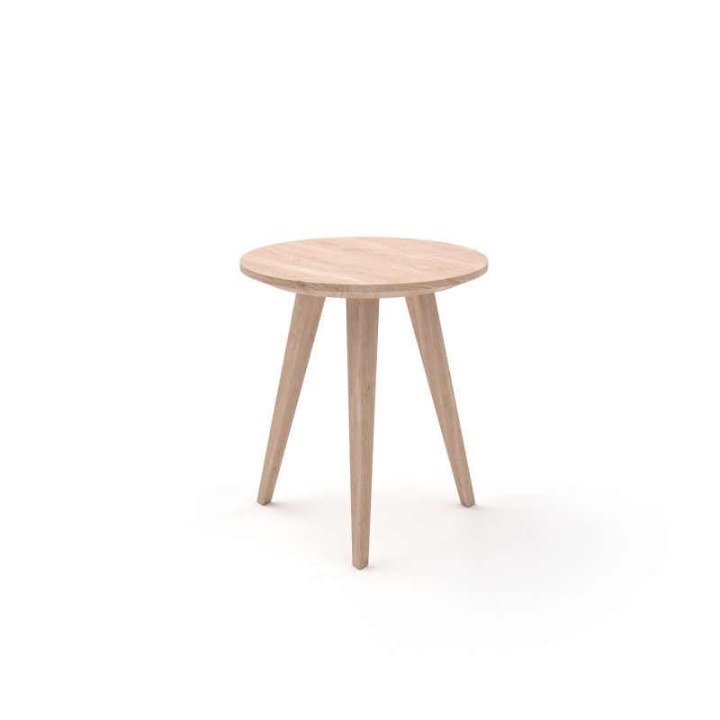 Minimalistinio dizaino skandinaviško stiliaus trikojė taburetė RONDO. Pagaminta iš gryno natūralaus medžio masyvo, padengta alyva. Kojelės modernios trikampės klasikos formos, siaurėjančios į apačią, kas taburetei priduoda papildomo žavesio. Kojelės pagamintos iš tos pačios medienos, kaip ir sėdimoji dalis. Tvaraus meistriškumo ir visą gyvenimą trunkančios kokybės ženklas.